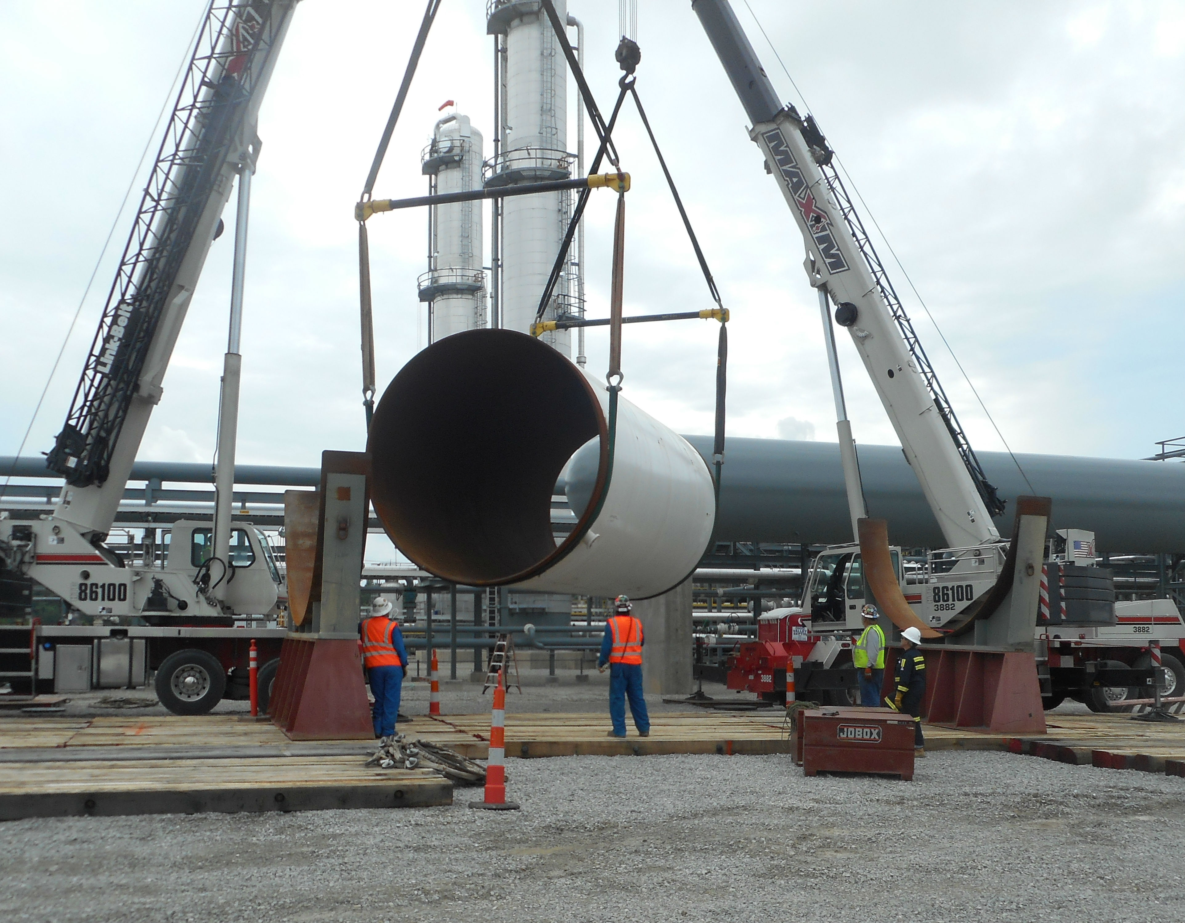 To transport the surge vessel from Oklahoma, it had be moved in three pieces. The vessel is being welded together and will be moved to its final location at Oak Grove. This $6 million investment will be placed into operation in November 2015, and is expected to pay for itself in less than four years.