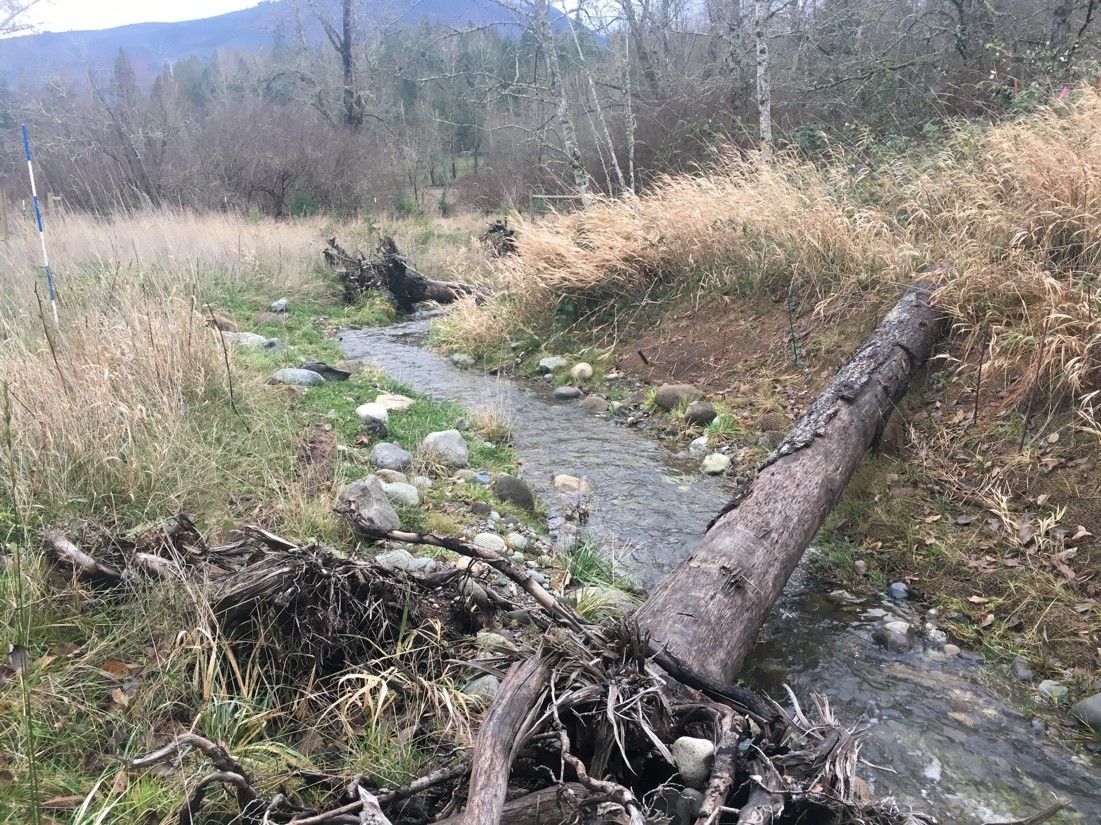 In addition, we removed non-native invasive plant along the creek banks and re-planted a native riparian buffer of shrub vegetation. This work is near an existing riparian enhancement project along the banks of Walker Creek and was designed to complement the restoration work already being done.