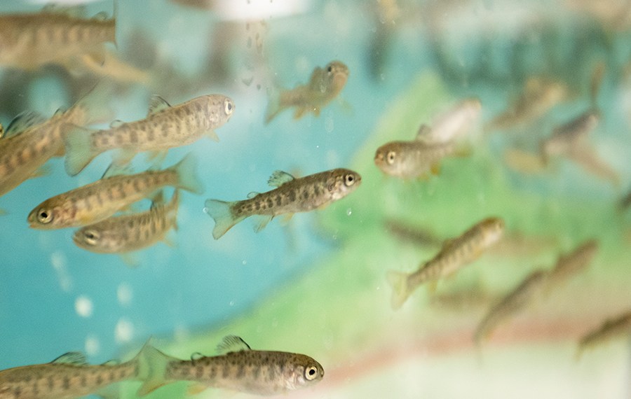 The students are participants in a Williams-supported program called Trout in the Classroom. They raise the fish from eggs in classroom tanks.