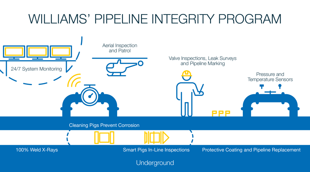 From aerial surveys to ground patrols to advanced robots inside the pipe, Williams uses the latest technology to ensure the safety and reliability of our 33,000 miles of pipelines.