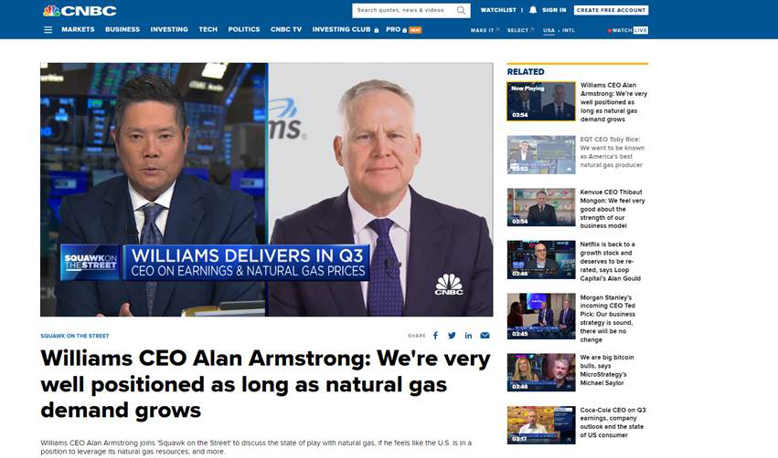 Armstrong touted the early partial in-service of Williams’ Regional Energy Access expansion easing supply constraints between Pennsylvania, New Jersey and Maryland.