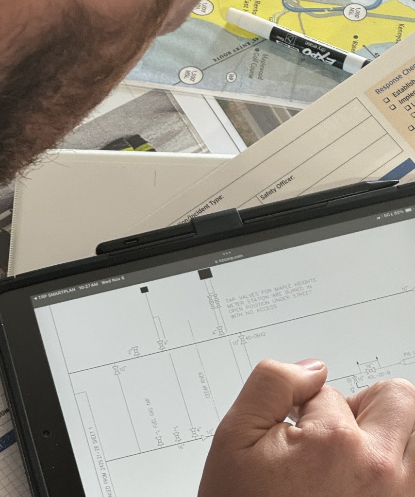 • Williams technicians on each team immediately opened their “Smart Plan” app, which is a tool Williams has recently implemented, replacing hardcopy emergency manuals with all the emergency procedures and drawings for a given district on every employee’s mobile device. Employees were able to immediately pull up addresses, phone numbers, pipeline diagrams and other information needed to isolate the system accurately and quickly. PSE personnel were very impressed with the Smart Plan app and its ease of use by the field technicians. They mentioned that they would like to utilize a similar tool.