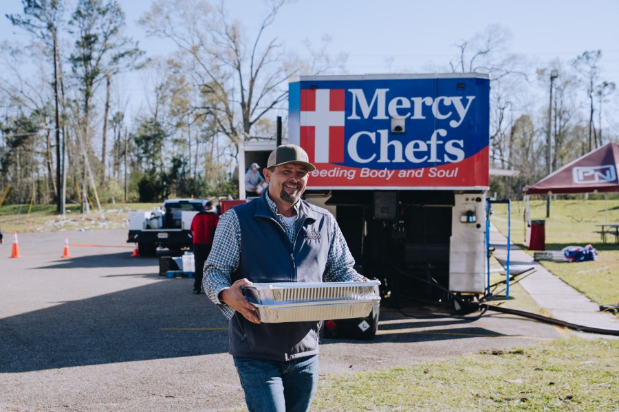 “We will have provided 25,000 meals by the end of the week to victims, first responders, police officers and linemen,” said Lisa Saylor, director of U.S. disaster relief for Mercy Chefs. “These areas have no power or water so they are very grateful.”
