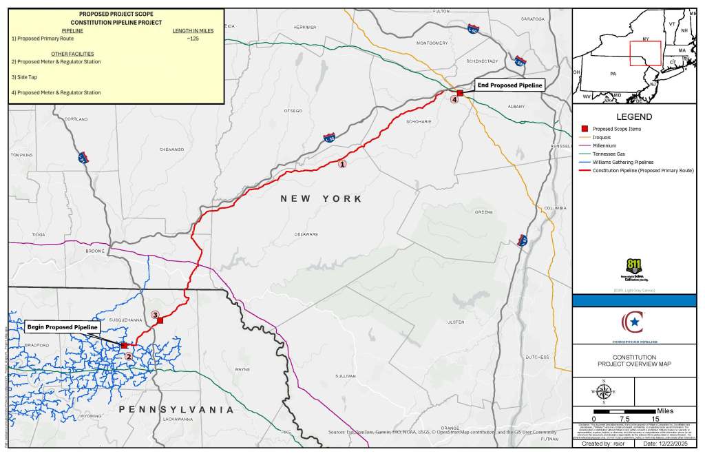 - The pipeline terminates in Schoharie County, connecting to existing infrastructure for regional distribution.