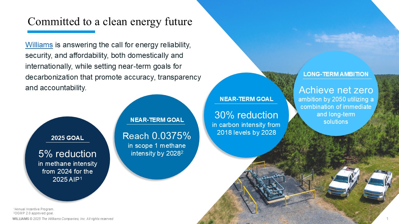 Williams is answering the call for energy reliability, security, and affordability, both domestically and internationally, while setting near-term goals for decarbonization that promote accuracy, transparency, and accountability.